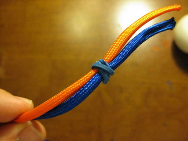 Con la tira de la cuerda y goma en su lugar, estamos listos para marcar, atar y apretar el primer nudo!