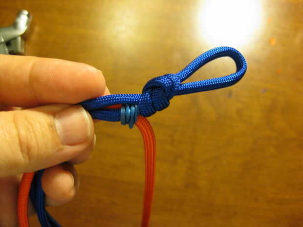 Tire de él hasta que el bucle es apenas lo suficientemente grande como para que ambas cuerdas se deslicen fácilmente a través de.