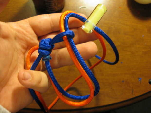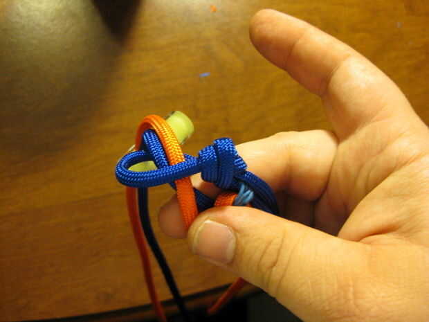 El primer nudo es demasiado grande, sin embargo, así que tenemos que apretar hasta que los dos filamentos.