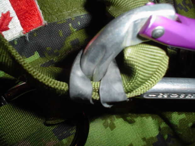 Los escaladores entre usted sabe la frustración de tener un mosquetón deslizante hacia arriba y abajo un pedazo de cordaje, o en un pedazo de cinta. Aquí es una solución simple.