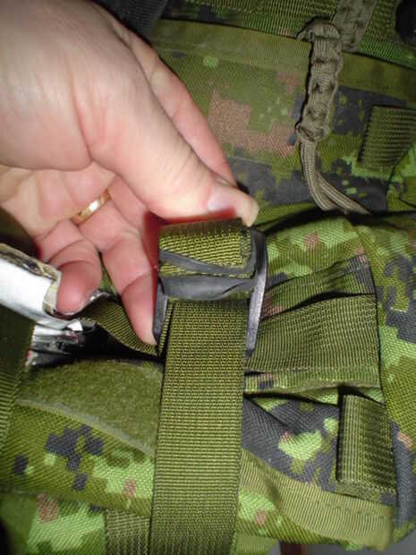sé que esto es un TOC, pero odio cuando mi paquete está amañado para arriba, y hay todas estas brocas de repuesto de strappage dando vueltas por todo el lugar. Esto es especialmente cierto de los paquetes más recientes / chalecos de cojinete de la carga. Utilizar trozos de llanta de bicicleta alrededor de media pulgada de ancho y envuélvalos alrededor de la correa que después Enrolle firmemente al paquete. También son útiles para su uso en otros lugares, como ya están en el paquete. (Nota el tirón de la cremallera del paracord en fondo)
