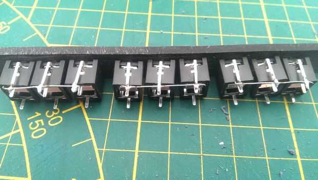 -Soldar entre sí los pines en el otro lado de las tomas.