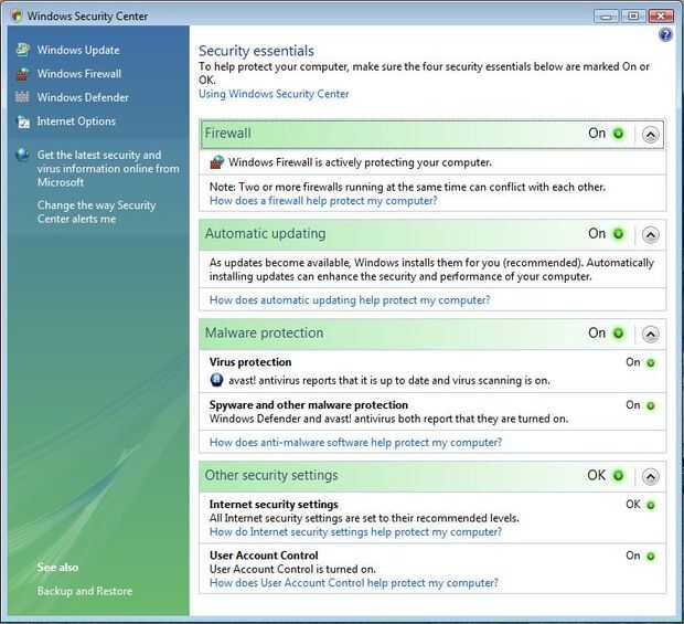 Otras mejoras sobre la versión de Windows Security Center que debutó en Microsoft Windows XP SP2 incluyen que muestra el estado del software diseñada para proteger contra software espía, su configuración de seguridad de Internet Explorer 7 y el Control de cuentas de usuario. Además, Windows Security Center puede controlar productos de seguridad de múltiples empresas y mostrar que están habilitadas y al día.