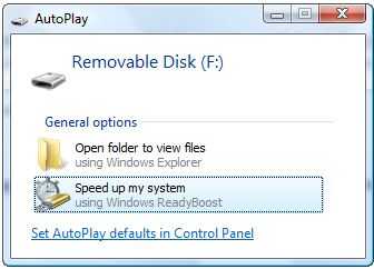 Algunas cosas a tener en cuenta - que necesita una unidad USB 2.0 para ReadyBoost trabajar y también necesita una unidad para ReadyBoost. La forma más sencilla de comprobar este segundo criterio es comprar un ReadyBoost certificado unidad de SanDisk o uno de los otros fabricantes de coche de pulgar. No estás limitado a usar unidades de pulgar - un Compact Flash, SD, u otro dispositivo de memoria extraíble también funcionará.