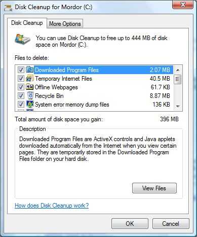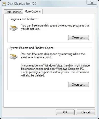 Aparte de eliminar los archivos innecesarios, los usuarios también tienen la opción de compresión de archivos que no se ha tenido acceso durante un periodo determinado de tiempo. Esta opción proporciona un esquema de compresión sistemática. Accede con poca frecuencia los archivos se comprimen para liberar espacio en disco, dejando los archivos utilizados sin comprimir para acceso de lectura/escritura rápidos. Si después de la compresión del archivo, un usuario desea acceder a un archivo comprimido, los tiempos de acceso pueden aumentar y variar de sistema a sistema. Además de las categorías que aparecen en la ficha de limpieza de disco, la ficha más opciones ofrece opciones adicionales para liberar espacio en disco duro a través de la eliminación de componentes opcionales de Windows, programas instalados y todos pero el más reciente punto de restaurar sistema o copia datos en algunas versiones de Microsoft Windows.