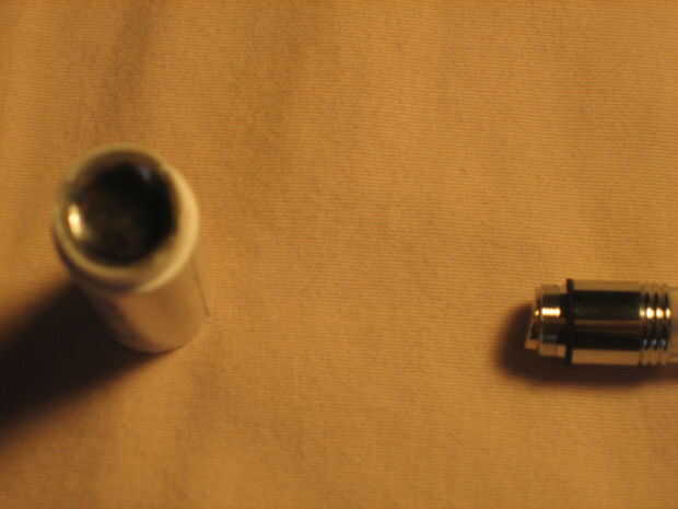 con tapa unida todavía a la luz apriete el anillo de pegamento caliente alrededor de la pieza final. tomar el todo ligt e introducirlo nuevamente primero en el tubo de vacío capstick hasta que solamente la sección intermitente del tubo de muestra.