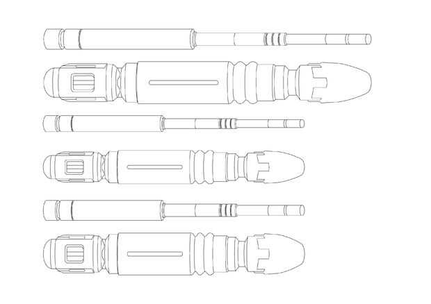 Basado en el cuadro #3 (y gracias a trabajar con trazados) hice estos tres tamaños diferentes de la vara para usar como plantilla para la impresión. Mi amigo se decidió por la combinación en el medio, pero basado en la mano es posible que prefiera otra versión como le parezca. O simplemente la escala durante la impresión para satisfacer sus necesidades.