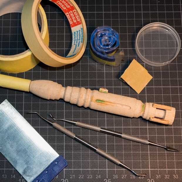 Pinto plata de destornillador las décimas / metal de todas formas el grano de madera no es importante, lo que puedo conseguir lejos con el uso de otros materiales para reparar mis errores anteriores. Para esto usé Kneadadite Green Stuff, que he aplicado con una variedad de herramientas modelmaking. Manteniendo los dedos y herramientas mojados mientras haciendo así evitará que el material verde se pegue a tus dedos y herramientas.