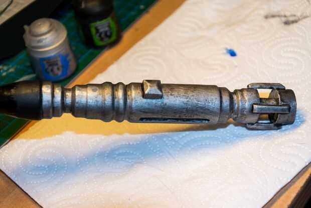 Como usted puede o no haber notado hubo un intento de mejorar el negro tapa de pincel seco se plata, que falló miserablemente. Pinté sobre todo con pintura de acrílico negro para 'reset' (que es la parte buena de pintura, usted puede ganar casi siempre restablecer sólo pintando sobre ella). Quiero esta tapa negra para que parezca es solo negra pintura sobre metal, como en parte del destornillador de la décimas están hecha completamente de metal con sólo que el tapón de haber sido pintado de negro, añadiendo algunos rasguños que revelan el metal plata abajo.