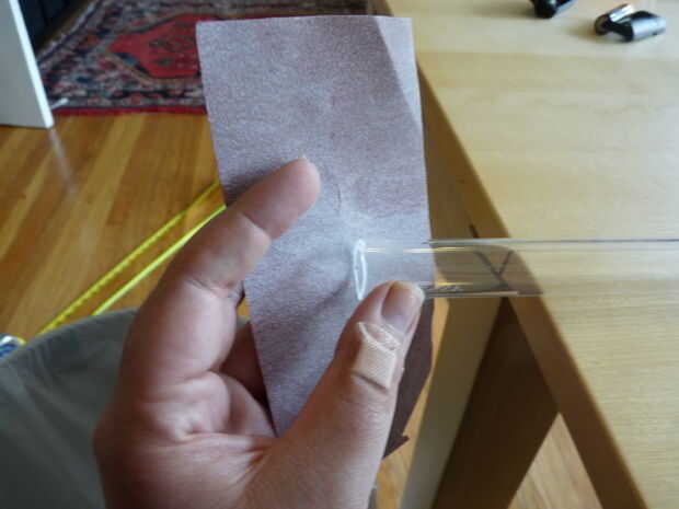 Si estás usando un cortador de acrílico, anotar y romper el acrílico. O use una sierra o una dremel. Los extremos de la arena. Puede ser una buena idea llevar guantes y gafas, el acrílico es agudo cuando se rompe y polvo plástico probablemente no es tan bueno para respirar!