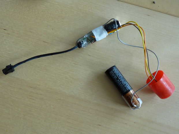 - Tomar la espiral en el puesto de batería de larga duración, gírela 180 grados y acortar el alambre para que quede alineada contra el conjunto controlador. Ahora la batería puede sentarse a la derecha del conductor.