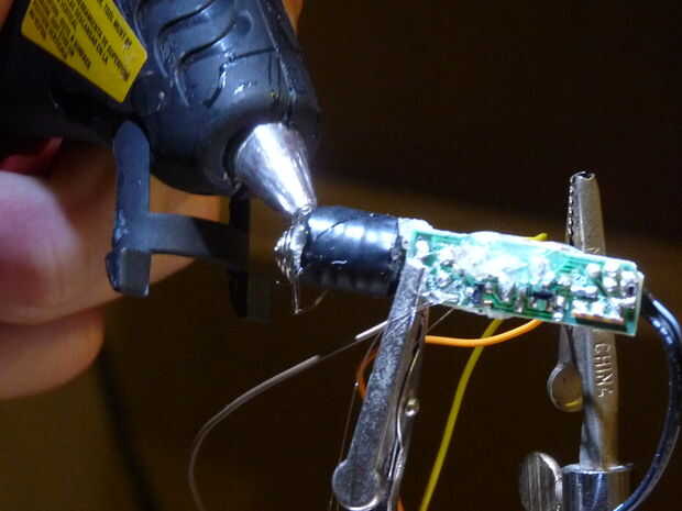 - Cubre todo con abundante pegamento. Cinta aislante un poco es buena también para el seguro.