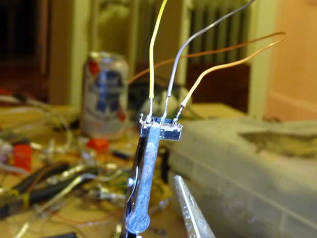 - La soldadura de los tres puntos de contacto del interruptor y extenderlo con tres cables más.