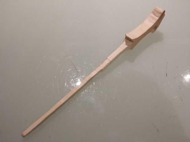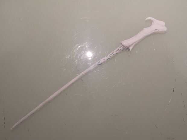 (Nota: la imagen de la plantilla es una imagen de la recreación de Noble Collection de la prop. El eje de la versión de Noble Collection es recta, pero la prop original tenía una leve curva del gancho de arriba hasta la mitad).