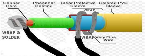 - Gire el largo cable de AC para el extremo desnudo de EL hilo de cobre.