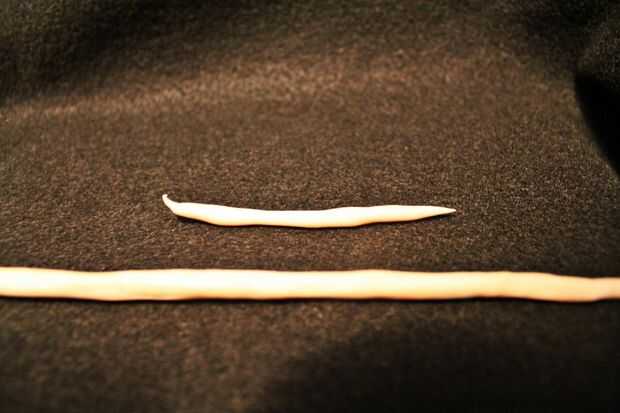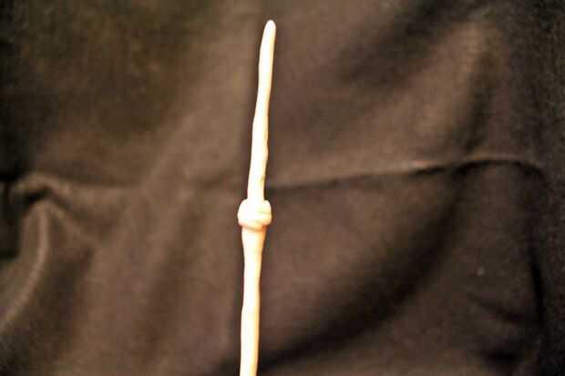 empezar con una serpiente pequeña aproximadamente 2 pulgadas de longitud y alrededor de 1/8 pulgada de espesor y poco a poco hacer serpientes más gruesas y repita hasta que tenga su forma áspera de la varita.