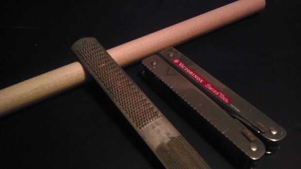 1. palillo, espiga, rama, 1 x 1, cualquier "carveable" pieza de madera que usted quiere hacer en una varita. 2. cuchillo 3. papel de lija 4. Sierra 5. escofina 6. laca (opcional) 7. pintura (opcional)