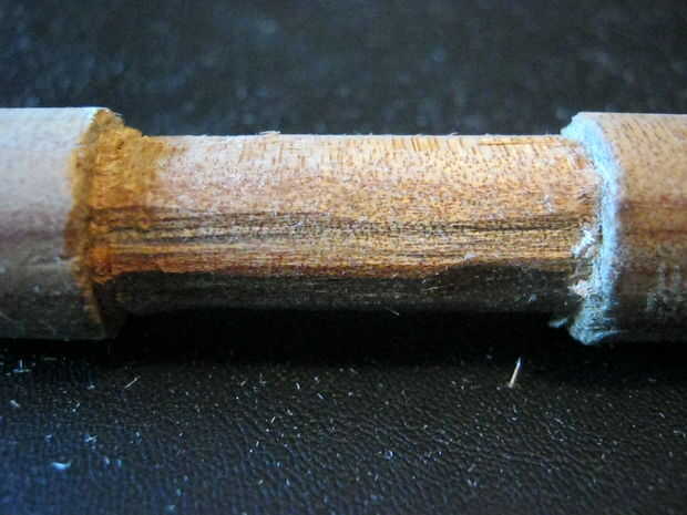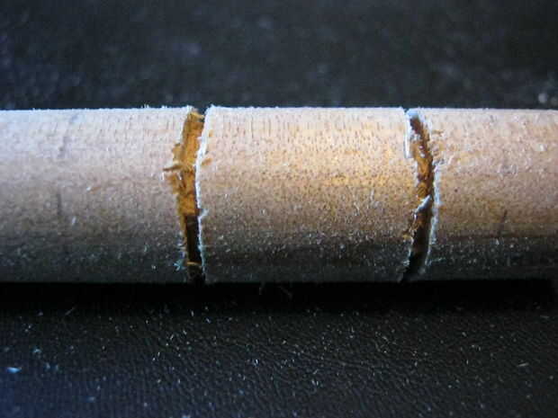 Poco a poco, con su sierra, sacar trozos de madera hasta que se alternan áreas gruesas y delgadas.