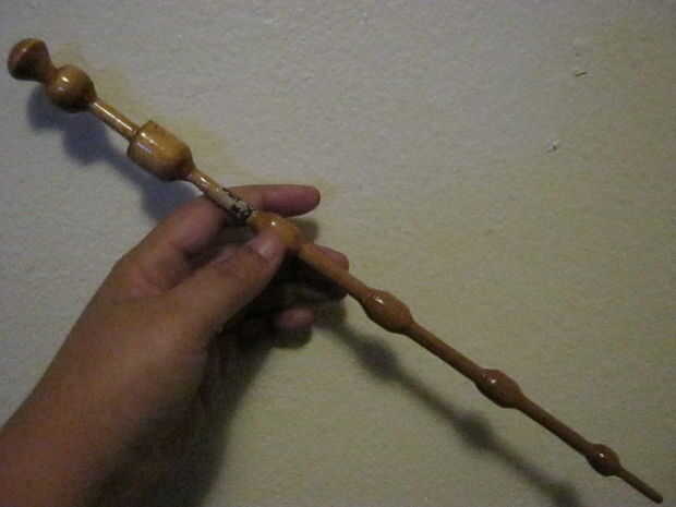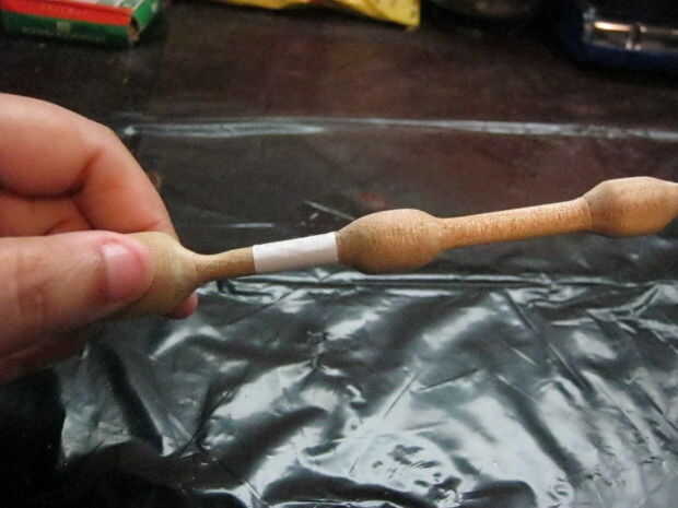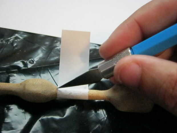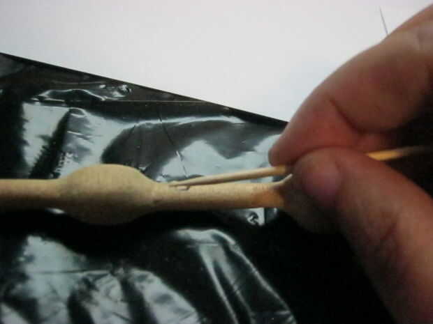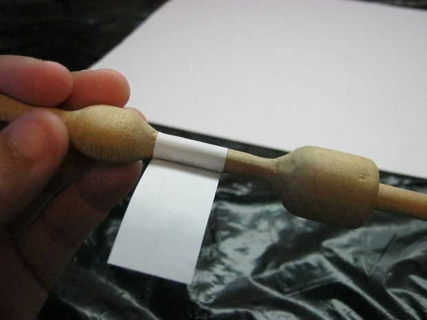 Luego, utilizando un palillo de dientes, aplicar algún pegamento a la vara y envuelve el papel alrededor de él.