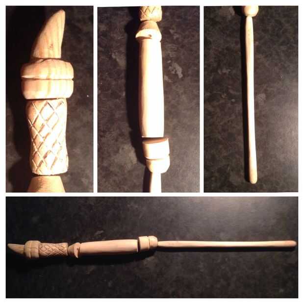 Justo antes de Navidad mi hija fue a una fiesta de cumpleaños de amigos y le preguntó si haría una varita como el amigo es un fan de Harry Potter y me encantaría tener uno.Me acuerdo y una varita de dos piezas de playa y caoba.La varita fue bastante