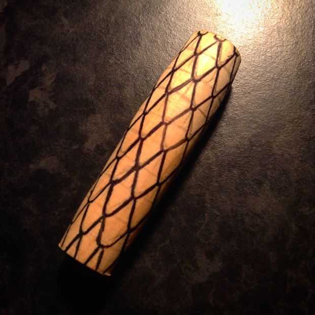 Como no tengo un torno para encender el tubo de una sola vez, dividirlo para arriba en secciones y tallado de las formas que quería. Una vez que estaba contento con la forma que limpiar cada pieza con papel de lija. Para añadir el aspecto de la escala a la manija, me utiliza una dremel para cortar muescas luego alisó hacia fuera con un poco lijado.