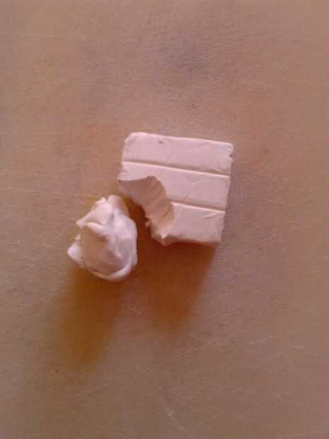 Esculpir la manija en la varilla. Esto tomará algunos tiempo así que no te apresures, utilizar algunas imágenes como referencia si es necesario. Cuando pruebe acabada la colocación de la base. Yo al horno mía para acerca de 30 minutos en 270.
