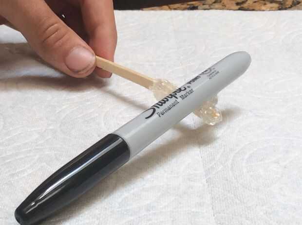 Continuar pegado y alisado con un mondadientes o un lápiz.