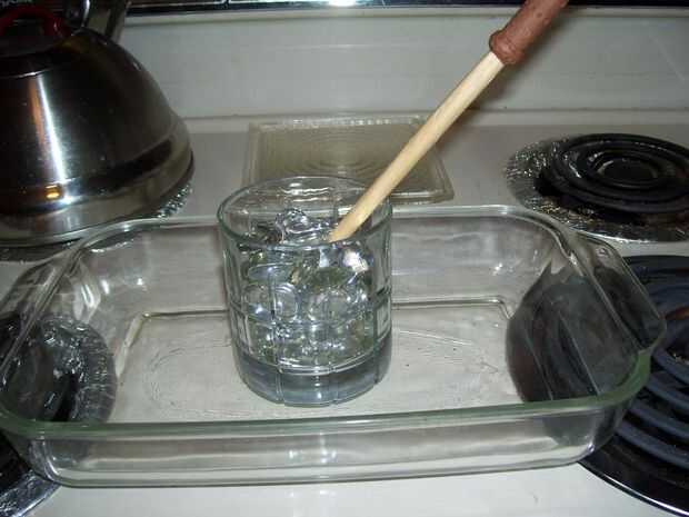 Coloque el tubo de madera hacia abajo en un recipiente de vidrio o una taza que se considera ovenworthy. Vierta en alguna arena, grava o guijarros para evitar que la varilla del mango tirarse hacia fuera. Coloque esto en un recipiente de vidrio de ovensafe. Arcilla del polímero es hornear en vidrio y metal podría causa más calor transferirse que desea así utilizar vidrio, como dice el paquete.
