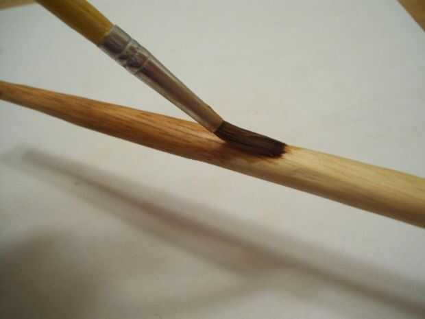 Una vez se haya enfriado, teñir o pintar la madera de tu varita. Cuando la mancha está seca, sellarlo y hacerlo brillante usando cera en pasta para muebles o el barniz, siguiendo las instrucciones del paquete.