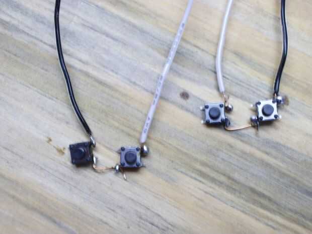El alambre caliente sobre el interruptor del tacto de la soldadura. Luego doblar sobre un segundo interruptor de tacto y soldadura en que uno también. Clip de cualquier cortinas. Los interruptores se colocarán en tándem en el tubo extensor.