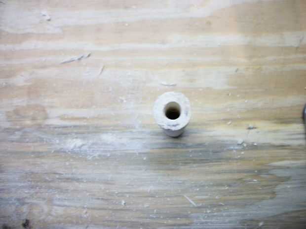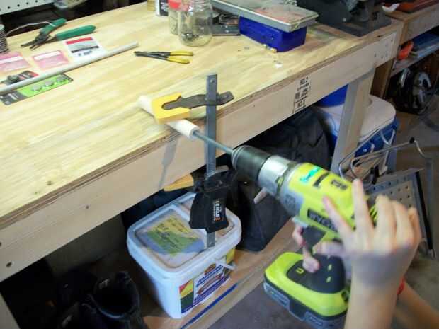 Sujete la palanca en su banco de trabajo. Perfore un agujero a través del es lateral, lo suficientemente amplia como para su tubérculo de baño que encajan perfectamente. Lijar los extremos del mango.