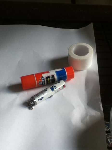 Necesita: 1peace de papel 1peace de gato láser cinta y una barra de pegamento