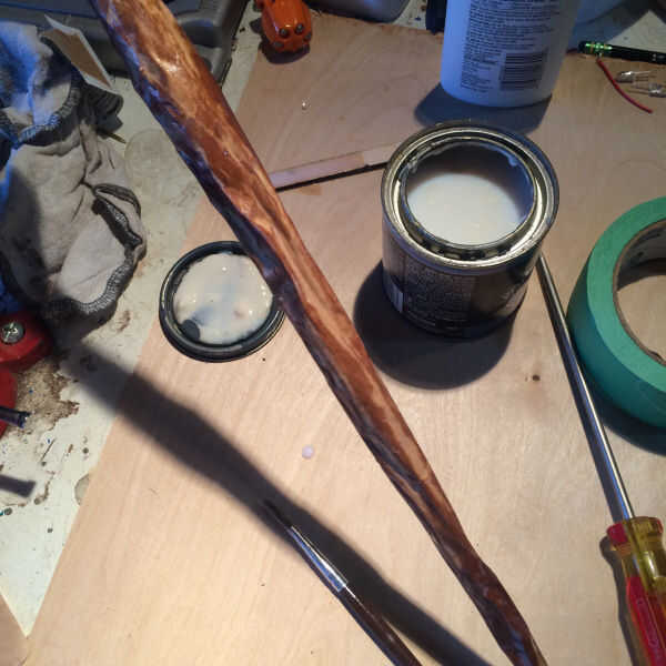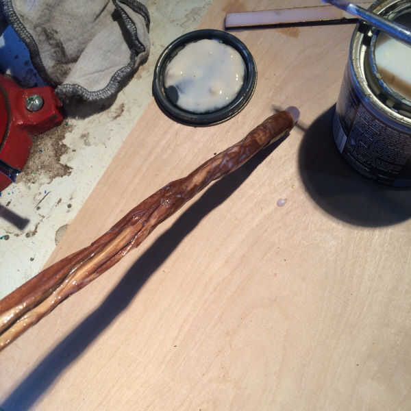Una vez que la mancha y la pintura se seca, cepillo o spray en algunos poliuretano. Esto le dará la varita un aspecto barnizado, de madera dura que ha sido bien utilizado y alisado con el tiempo. También a proteger el papel de la humedad hasta cierto punto.