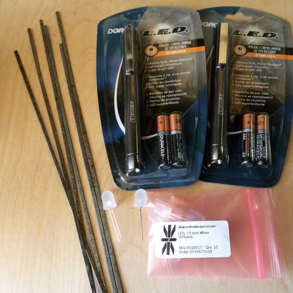 - Tres cerdas de barrendero (que se encuentran en las calles locales) o alambre rígido o metal stock