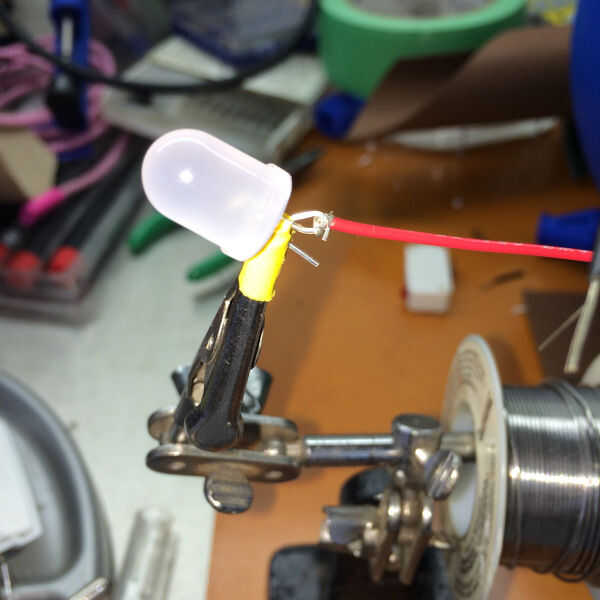 Soldadura y calor encogen el cable rojo al cable largo de lo 10mm LED.