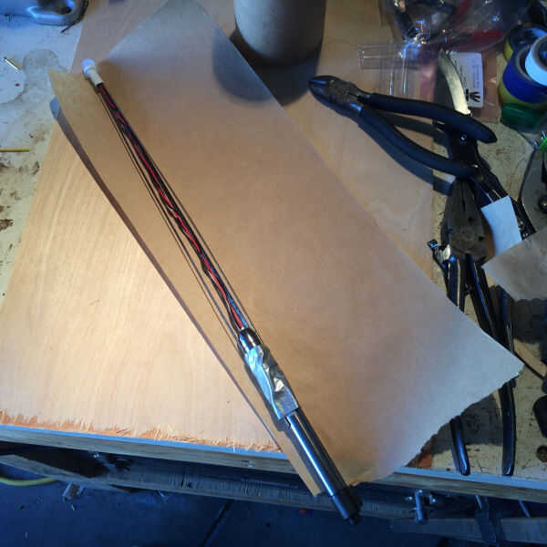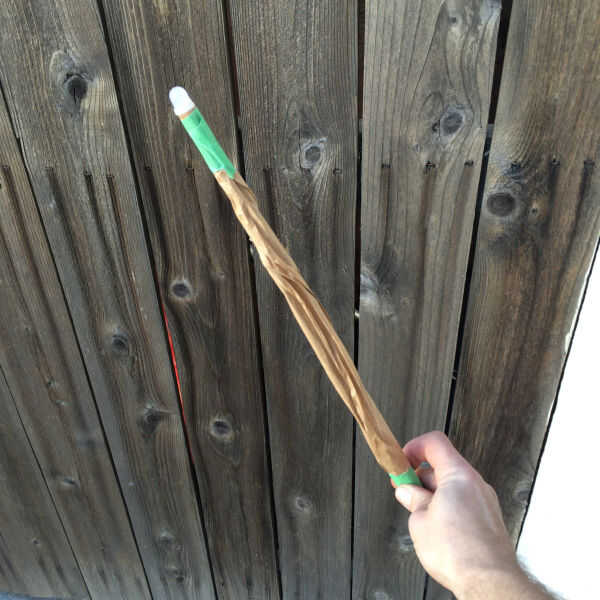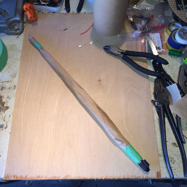 Envuelva el tubo en el papel del arte, asegurándose de dejar la tapa del extremo accesible para cambios de batería y el interruptor de funcionamiento. No cubra el LED tampoco.
