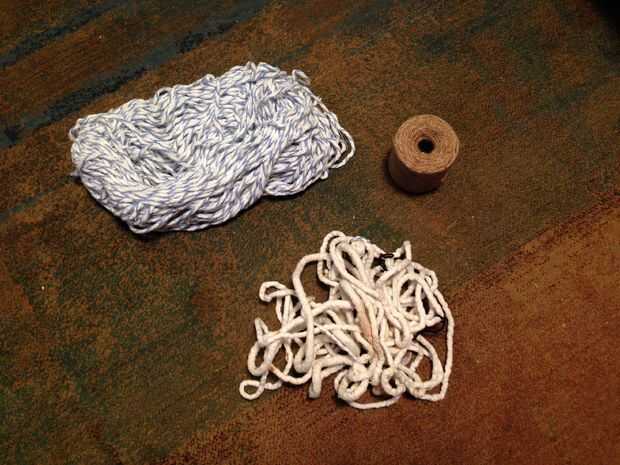 Para cadena orgánica, he utilizado tuberías de algodón y cordeles. La guita es muy delgada y otra vez no tiene mucha solución, ver arriba a la derecha de la imagen. Mi favorita es la tubería del algodón, ver media parte inferior de la imagen. Puedes encontrarla en una variedad de espesores y puede llevar a cabo una gran cantidad de solución. Fui con 1/4 de pulgada de espesor y parece que funciona bien.