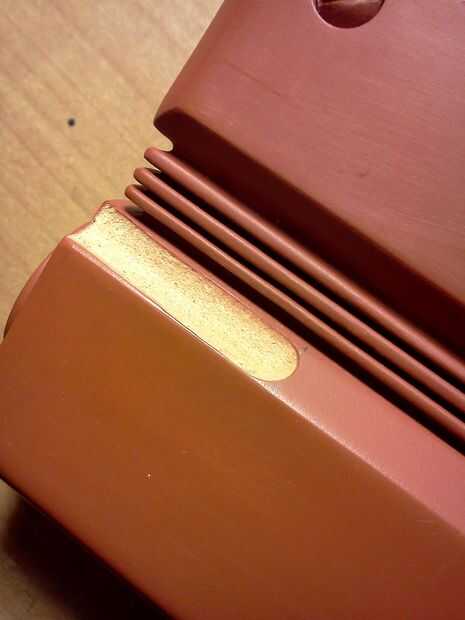 Voy a empezar con la parte inferior de la pieza de cañón (F1). Uso 3/4" redondo en la parte inferior de la F1 para el tamaño correcto de la derrota. Luego de la derrota los bordes superiores con el router de 45 grados poco a 5,5 mm del borde. A continuación puede pegamento en la parte delantera y espalda piezas de estireno (F11 y F12).