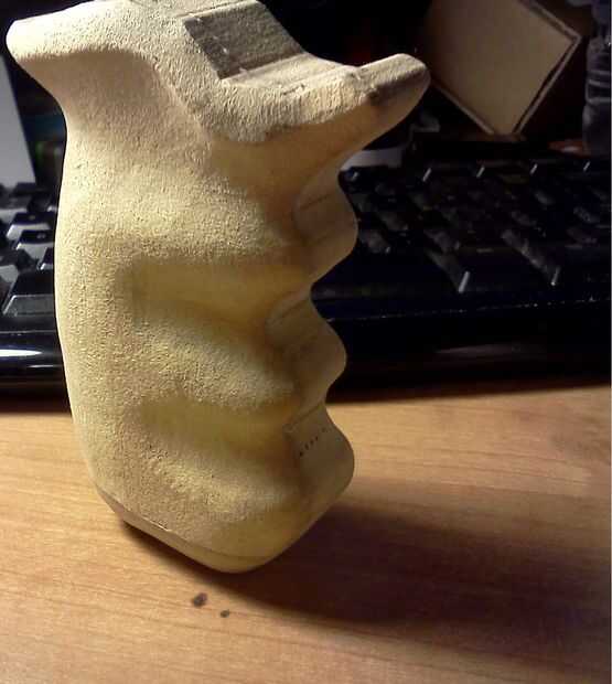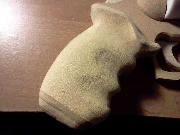 Esto es donde usted tendrá que romper los tambores lija de la dremel. Empezar por los ángulos de los lados de lijado. Los divots donde van a quedar los dedos necesitan ser lijada para un ajuste agradable a la mano. También necesita guiones de arena en el mango, una curva en la parte superior y una curva con una pequeña cresta en la parte inferior. Puedes ver los como ven en las fotos anteriores.