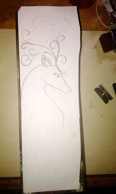 Elegí un ciervo para mi florero porque a menudo me recuerdan a caída y caída fue el tema que iba para. Aquí corté una hoja de papel para el vidrio y luego marcado en el papel donde quería el ciervo para ir, y desde allí.