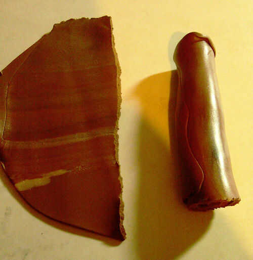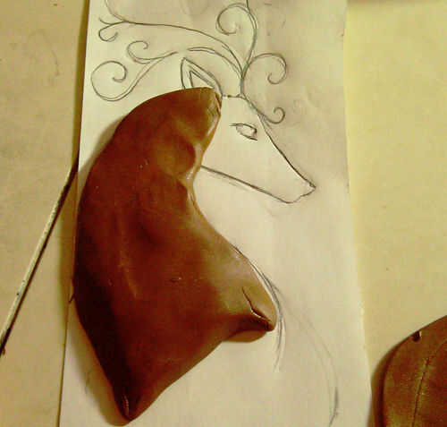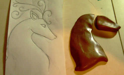* Tome su pedazo aplanado de barro, rasgar por la mitad y tomar una de las mitades y rodar como un rollo de jalea (Mmm). No tiene que ser perfecto porque vas a tener que smoosh alrededor para conseguir la forma que necesita. Simplemente aplástelo con la palma de la mano y empezar a formar el cuerpo de los ciervos (cuello y pecho).