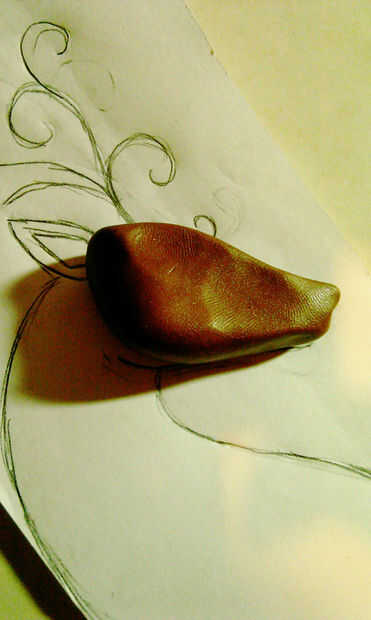 * Usted puede poner la pieza de arcilla contra la imagen para asegurarse de que estás en forma. (Sólo no deje la arcilla en el papel para un largo período de tiempo, porque el papel comenzará a filtrarse el polímero de la arcilla, con un lío seco y desmenuzable. D:)