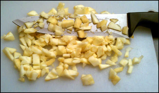 Una vez que todas las manzanas han sido peladas, picar las manzanas.
