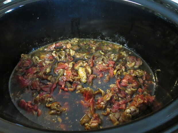 Verter sobre la carne y revolver.  Ponga la tapa y cocine en bajo 4-5 horas.