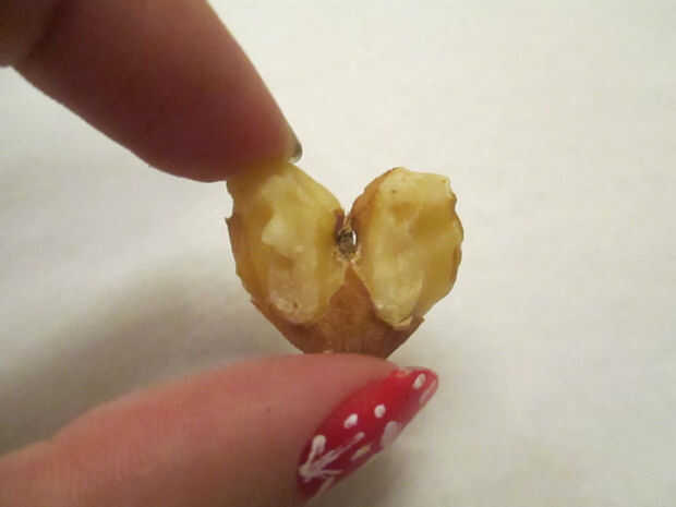 Mi hija agrietada abrir las tuercas y luego les picado. Ooh!, ella encontró un corazón perfecto en uno de ellos!