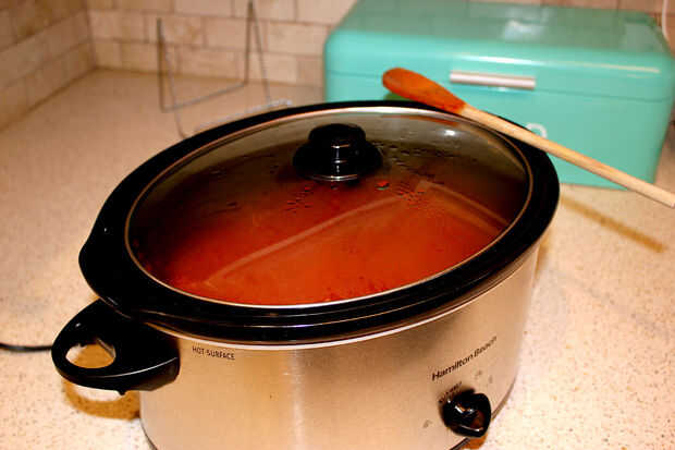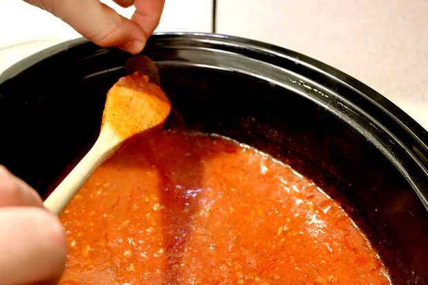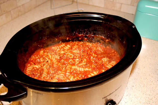 Mezcle los fideos en la sopa (vuelta para arriba de la olla a 'Alto' si no está ya allí) y luego cubrir y ajuste el temporizador durante 30 minutos. Después de 30 minutos, destapar y remover y usted está listo para plato para arriba!