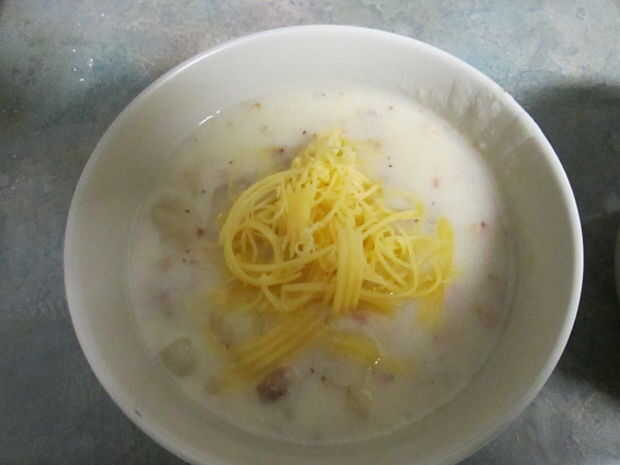 Hoy es un día para la comida. Qué maravillosa combinación de tocino y las papas en una sopa crema base. ¡ SÍ! Mi nieto acaba de llegar a la cocina con las palabras, "Tengo hambre, ¿qué es ese olor maravilloso?" Así que lo alimentó una taza de esta sopa y encantó, al igual que su mamá hizo cuando estaba creciendo. Si empiezas esta primera hora de la mañana, por la tarde usted tendrá una gran sopa para alimentar a su familia, especialmente en un día frío de lluvia como hoy. Vamos a empezar.