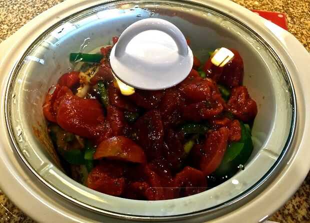 http://www.savynaturalista.com/2013/09/24/crock-pot-green-chili-chicken-stew-tomatillo-stewAjí verde receta de guiso de pollo:3 pechugas de pollo2 muslos de pollo8-10 tomates (puede utilizar puede)6 pimientos jalapeños (quité las semillas)1/2 taza de