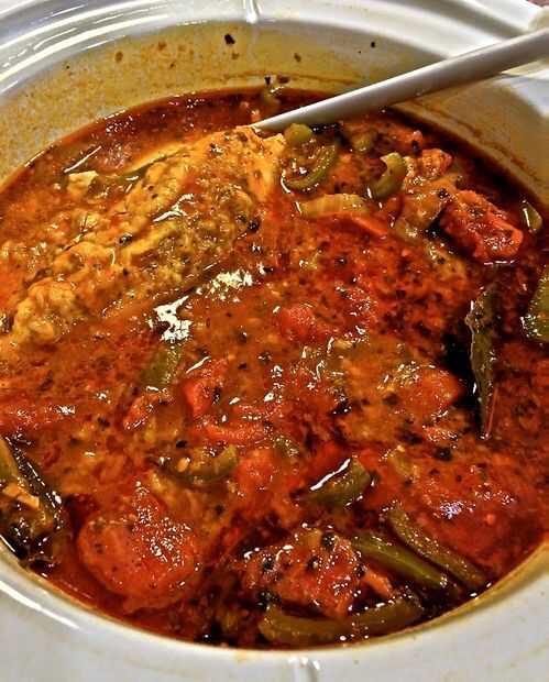 Tres a cuatro horas de cocción Retire la tapa y rápidamente mezclar que pollo Cacciatore a se asegura de que nada se aferra a la parte inferior de la vasija.