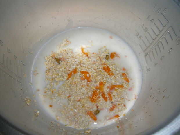 Ahora añadir la zanahoria rallada, avena, canela y esencia de vainilla. Puede reemplazar azúcar con miel.